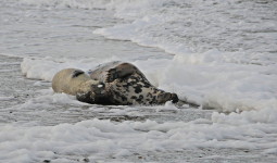 Robben im Schnee und im Schaumbad